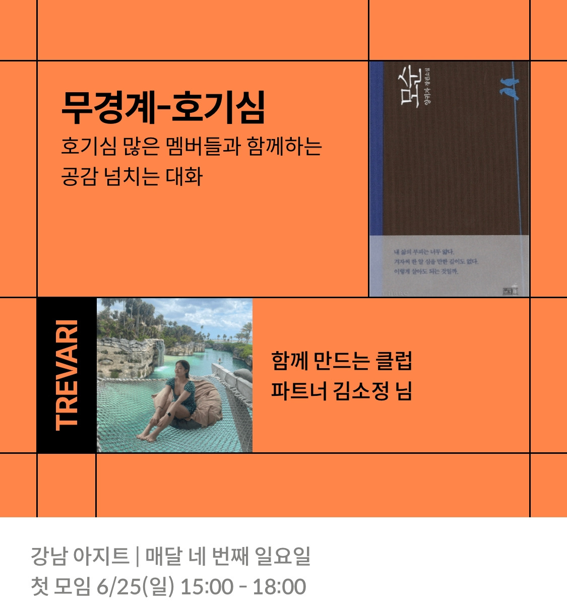 이번에 준비한 모임은 내가 트레바리에서 제일 재밌다고 느낀 ‘무경계’를 주제로 신청했다.
