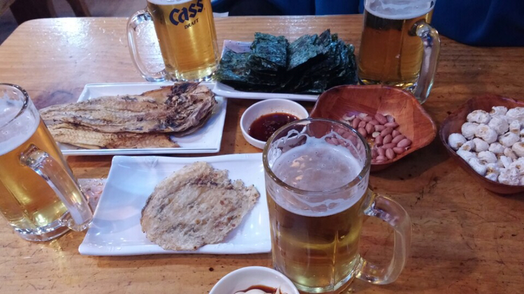 3차로 '한국의 슈바빙' 을지로 3가에 갔다. '초원호프'에서 '사민주의 주스' 500cc 1잔반과 노가리 2마리, 군김, 그리고 아귀포 하나를 시켰다.