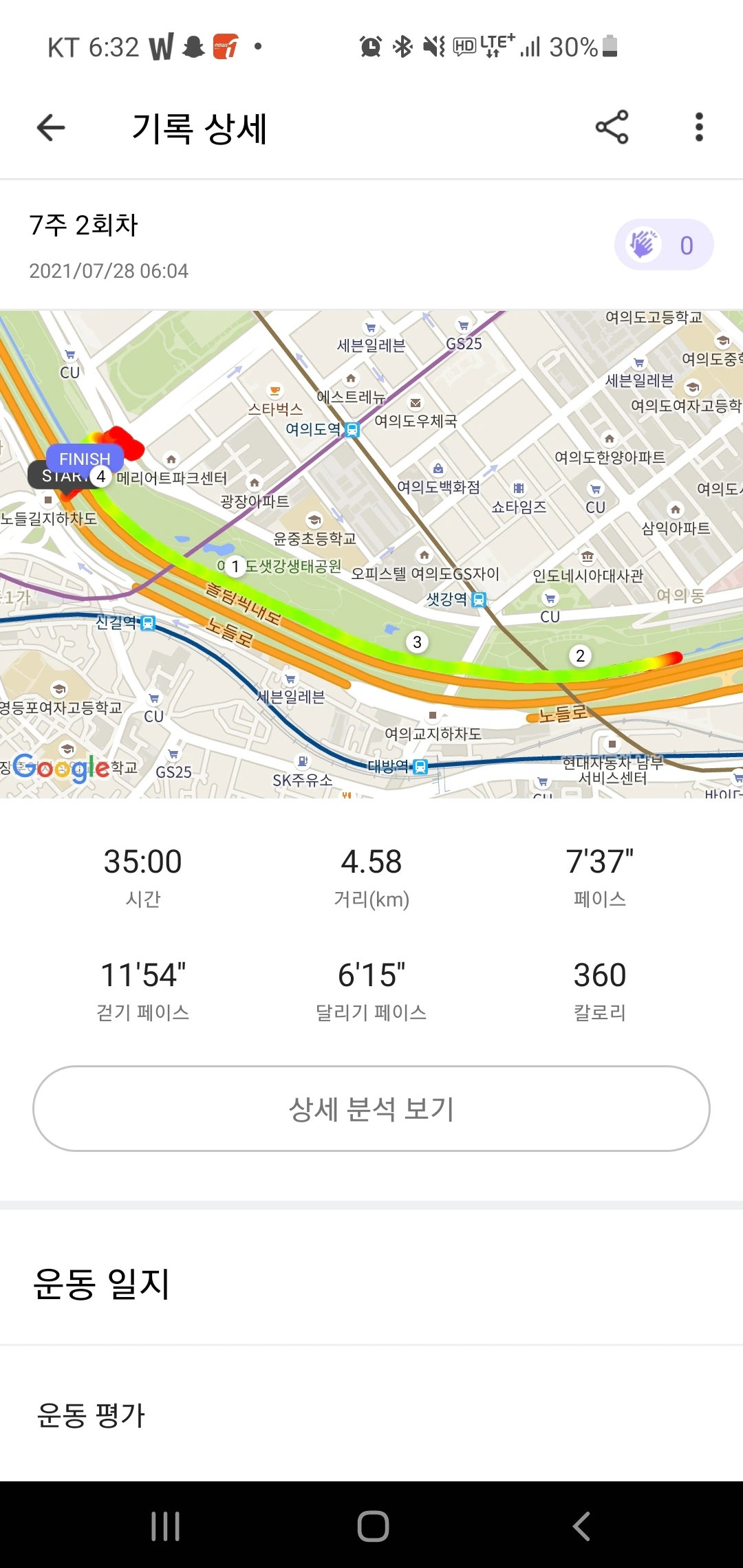 4번만 더 하면 '30분 달리기 도전' 완료다.