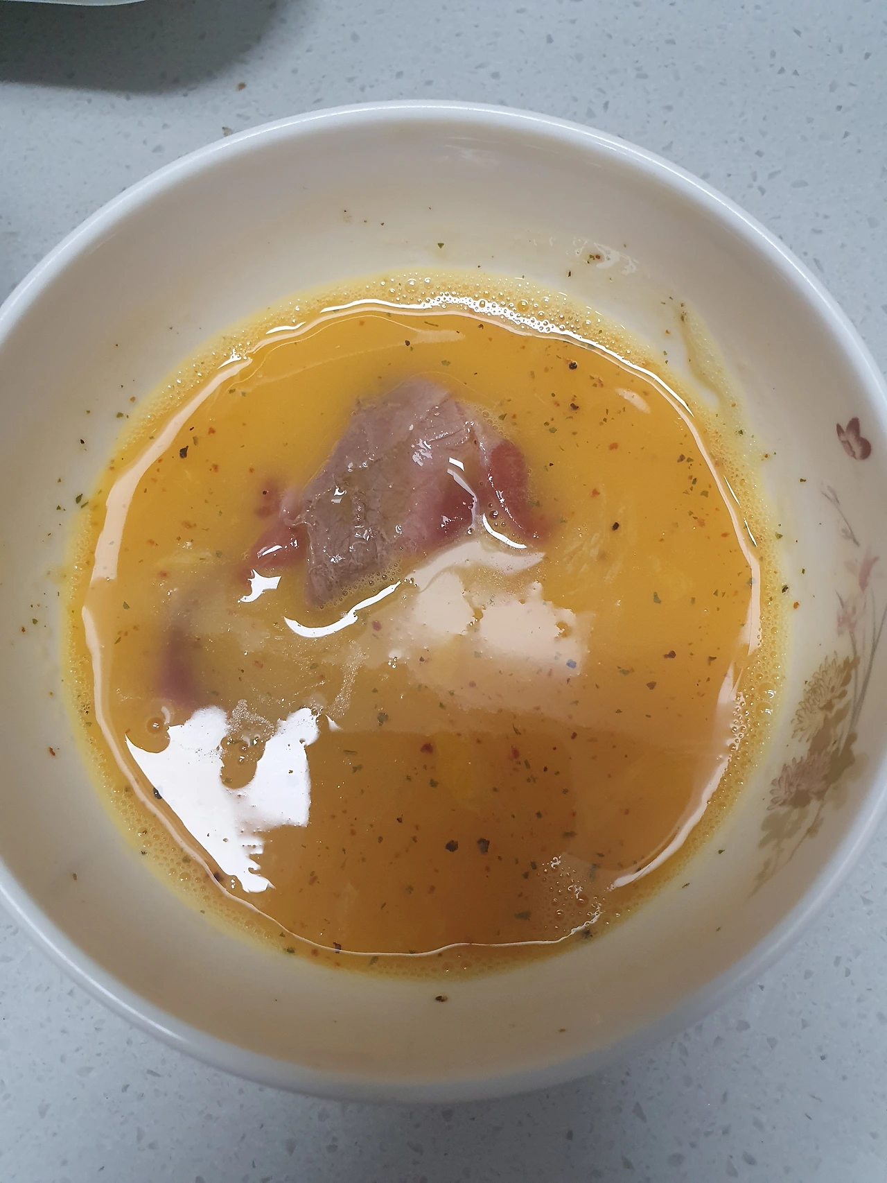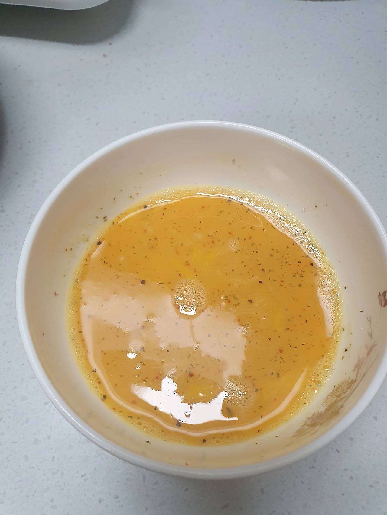2. 계란 2알을 풀어서 허브맛 솔트를 툭 툭 툭 넣는다.