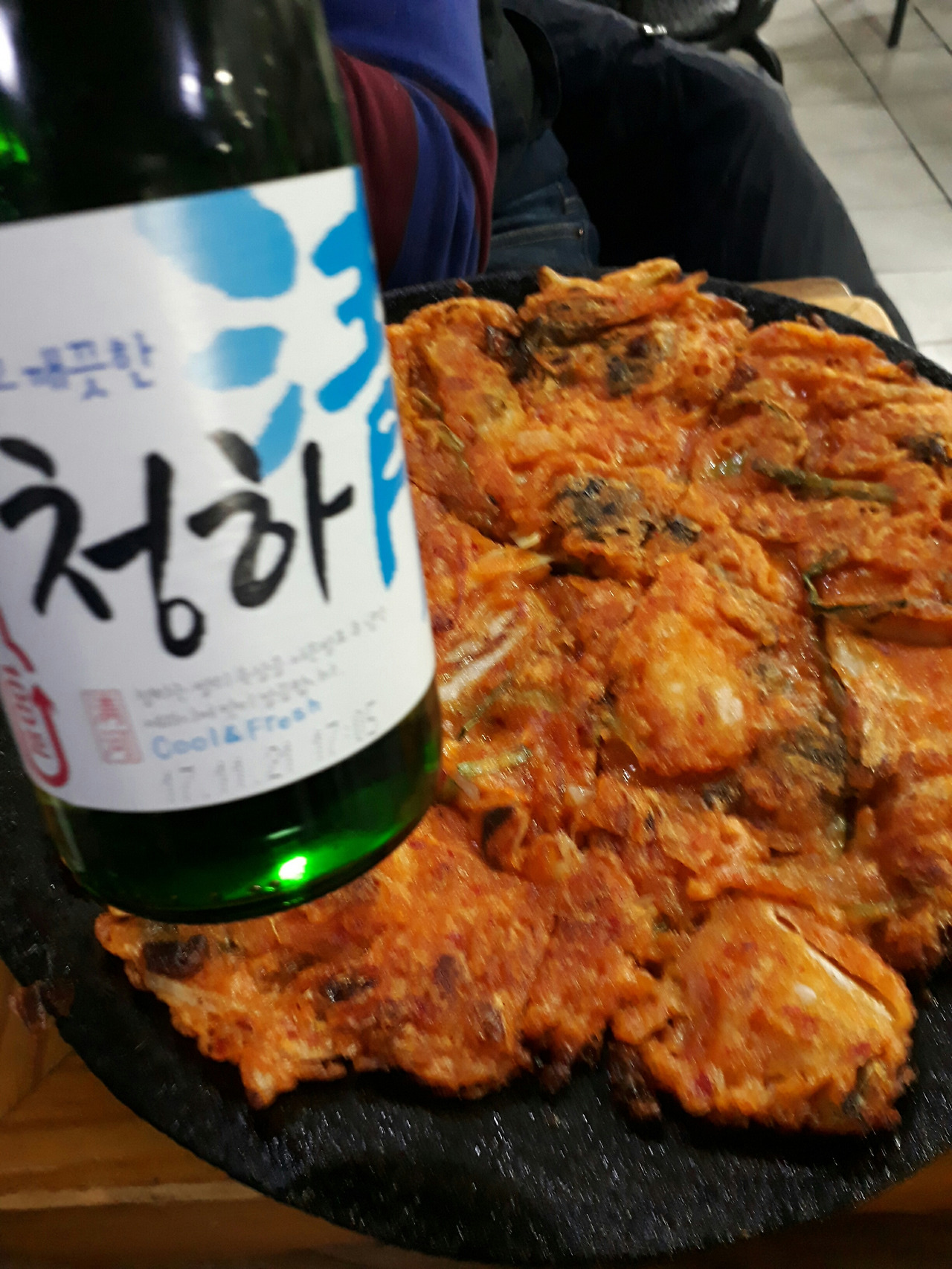 건과 2차에 왔다. 김치전과 라면에 청하 1병, 클라우드 1병을 마셨다.