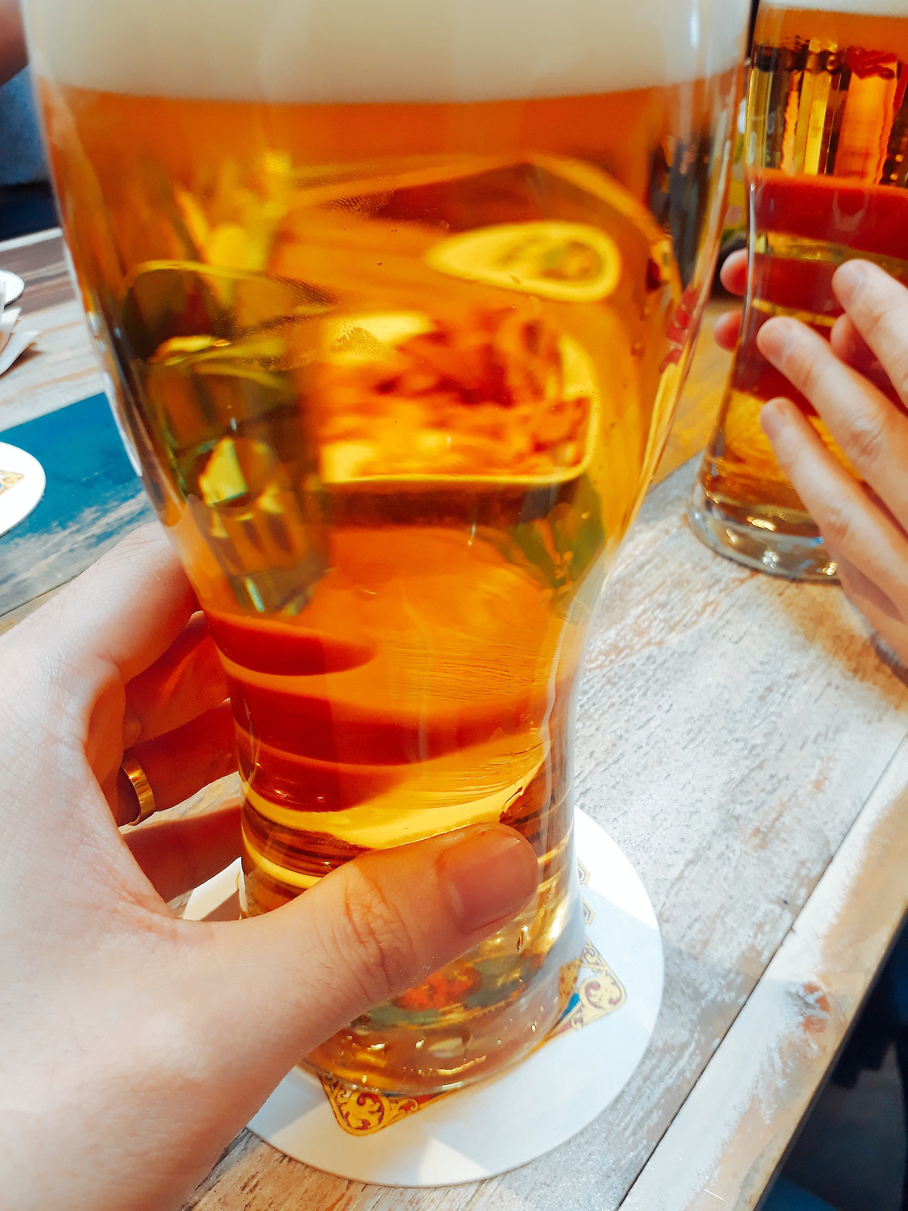 오전 10시쯤부터 오후 5시까지 술을 마셨다. 백주대낮 쨍쨍한 햇볕을 맞으며 자리를 세 번 옮겼다. 소주, 소맥, 산미구엘 생맥 등을 순서대로 마셨다.