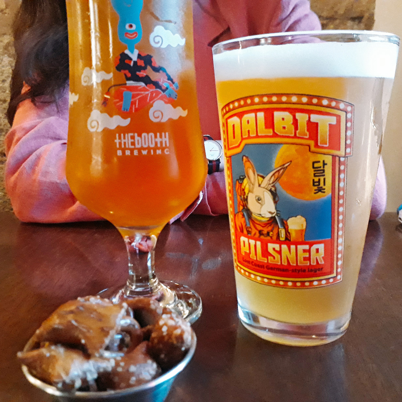 각자의 일을 끝마치고 우리는 시내에서 만났다. 익선동 모술집에서 나는 달빛필스너를, 미인은 국민IPA를 마셨다. 달빛필스너를 살짝 맛본 미인은 "먼지향이 난다"며 고개를 절레절레 흔들었다.