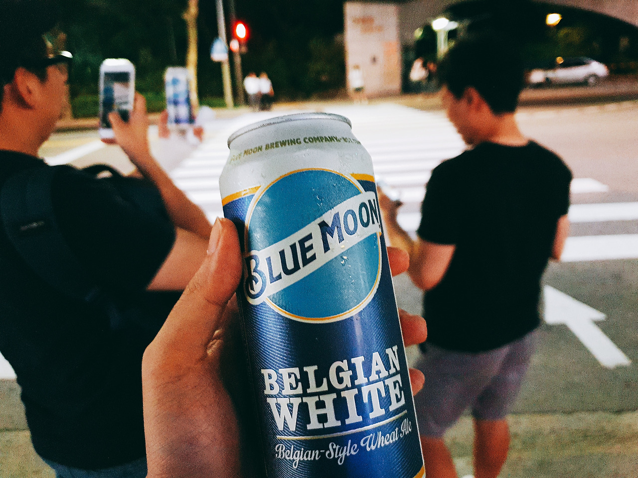 2차로 CU에서 블루문을 사서 교대로 갔다. 8월에 출시했다는데 동네 편의점에는 아직 팔지 않는다. 블랑과 맛이 닮았다. 인위적인 맛이 좀 덜한 정도? 날이 선선해서 그런지 산보를 나온 사람이 많았다.