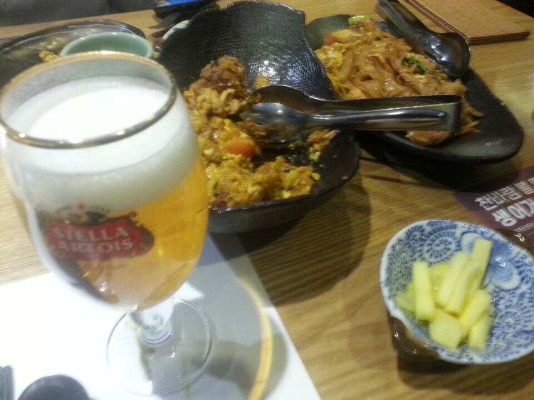 맥주잔에 거품의 흔적이 층으로 남았다. 평소 '스텔라'는 거품이 맛있다는 생각을 해왔는데 그걸 눈을 확인한 느낌이었다.