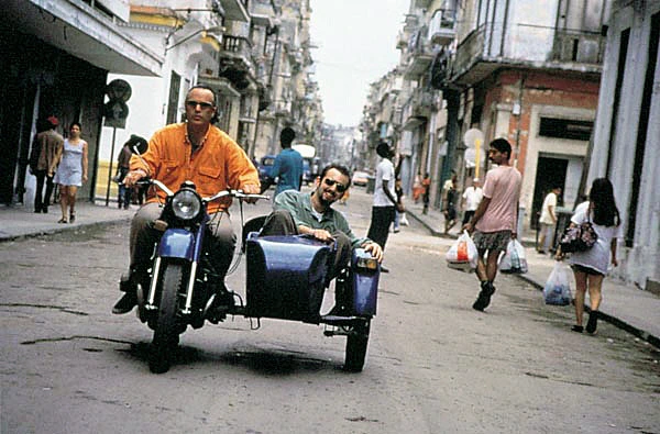 지금까지 <부에나>에서 중간 과정의 생략에도 불구하고 ‘부에나’로서 개인들이 존재할 수 있게 된 방식에 관해 얘기해보았다. 그런데 더 나아가 영화는 ‘부에나’에서 쿠바를, 쿠바에서 ‘부에나’를 보여준다. 예컨대 영화는 끊임없이 쿠바의 풍경을 담은 쇼트들을 제시한다. 이건 단순히 풍경의 제시가 아니다. 쿠바는 쿠바라는 이름만으로 강력한 이데올로기를 내포한다. 거기다 감독은 그것을 별로 숨기려 하지 않는다. 암스테르담 공연 실황 이전, 영화에서 처음에 굳이 (사진으로) 등장하는 ‘카스트로’와 ‘체 게바라’. 혹은 쿠바의 국기. 엄청난 크기의 시가를 물고 멍한 표정을 짓고 있는 여자. 곳곳에서 등장는 체게바라의 형상. 차를 타고 가는 와중에 놓치지 않고 집요하게 앵글에 담은 건물의 낡은 간판, ‘Karl Ma x’.
