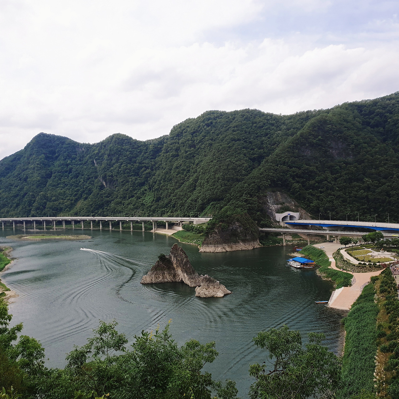 충주호 유람선 선착장은 충주호로 이어진다. 바로 건너편에는 구담봉이 솟아있는데, 그 자락에는 사찰이 하나 있다. 걸어서는 드나들지 못한다. 수위가 높아진 탓이다. 불자들이 미리 연락을 하면 스님이 배를 끌고 나온다.