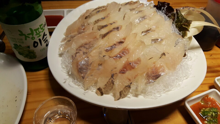 집 가는 길에 친애하는 고시생과 '오징어나라'에서 잠깐 회동했다. 우럭회와 '청포도에이슬' 1병을 마셨다.