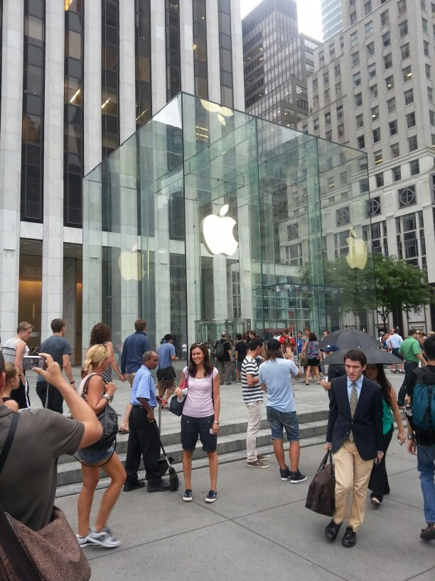 센트럴 파크 남쪽으로 나오니 바로 애플 건물이 보였다. 마침 비도 오고 와이파이를 할 겸 지하로 내려갔다. 사람들로 붐볐다. 역시 외국은 애플이다. 갤럭시 쓰는 사람은 하나도 없는 듯. 아까 모마 기념품샵에서도 핸드폰 케이스가 죄다 아이폰이었지 갤럭시 거는 하나도 없더라. 어쨌든 계단 옆에 걸터앉아 주구장천 와이파이나 하며 사람구경을 했다.