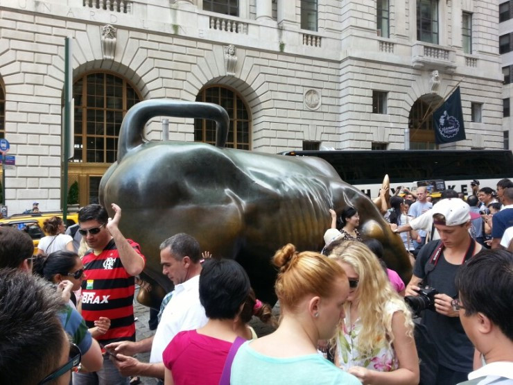 거리를 올라가다 보니 한 곳에 인파가 몰려있었다. 뭔가 봤더니 그 유명한 월스트릿 황소상이었다. 다들 황소 앞에서 밑에서 옆에서 뒤에서 사진을 찍으려고 아우성들이었다. 어떤 여자는 황소의 불알을 잡고 사진을 찍었는데 주위 남자들이 건전하지 않은 웃음을 뱉어냈다. 여자도 약간 민망했던지 사진을 찍자마자 이내 자리를 떴다.