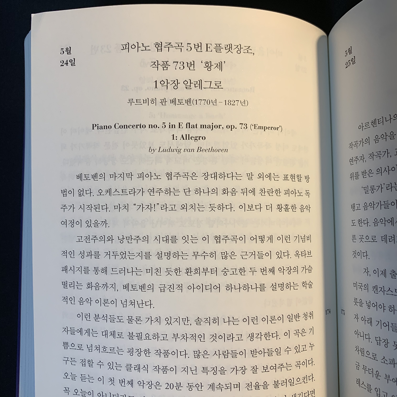 특히나 좋아했던 모차르트의 이야기들은 하나하나 눈여겨 보았고, 흥미로웠던 베토벤의 이야기도 집중해서 읽어내려갔다. 특히나 두 사람의 곡이 나올 때마다 귀가 호강하는 기분이라 잠시 읽던 것을 멈추고 노래를 전체 재생하거나 심포니 전체를 이어 듣기도 했다.