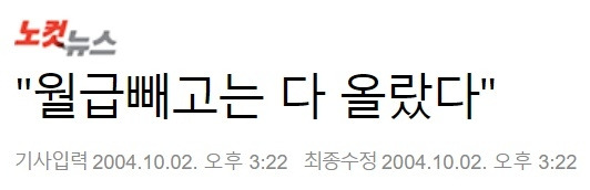 '월급과 우리 애 성적만 안 오른다'라는 표현이 인상적입니다. 눈썰미가 좋은 분들은 위 사진들을 보고 알아챈 부분이 있을지 모르겠습니다. 해당 뉴스 기사들은 '월급 빼고'라는 키워드로 검색 후 오래된 순으로 정렬한 가운데 캡처한 사진입니다. 각 기사는 위에서부터 01, 04, 09, 12, 16, 21년도 순으로 작성되었습니다.