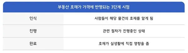 호재는 분명 주거 여건상 해당 지역에 긍정적인 영향을 가져오는 효과가 있습니다. 하지만 사실 부동산 투자에서 호재가 주는 영향이 그렇게 크지 않은 경우도 많이 있습니다. 투자하려는 부동산의 시장 분위기나 시점에 따라 호재는 호재일 수도, 호재가 아닐 수도 있기 때문입니다.
