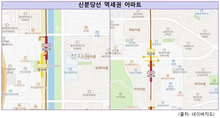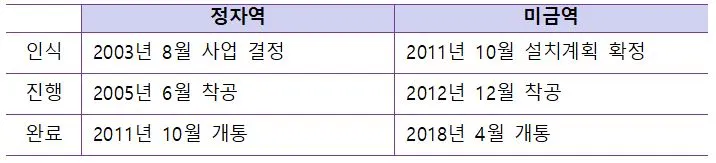 위의 두 아파트는 각각 정자역, 미금역의 역세권 아파트로, 신분당선이 개통되는 호재가 있는 단지였습니다. 정자역과 미금역의 개발과정을 3단계의 시점으로 나누어보면 다음과 같습니다.