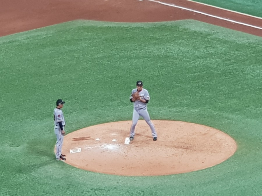 지금은 sk와이번스로 간 22번 핸섬한 이태양 선수. 2018년 준플레이오프 직관 촬영.