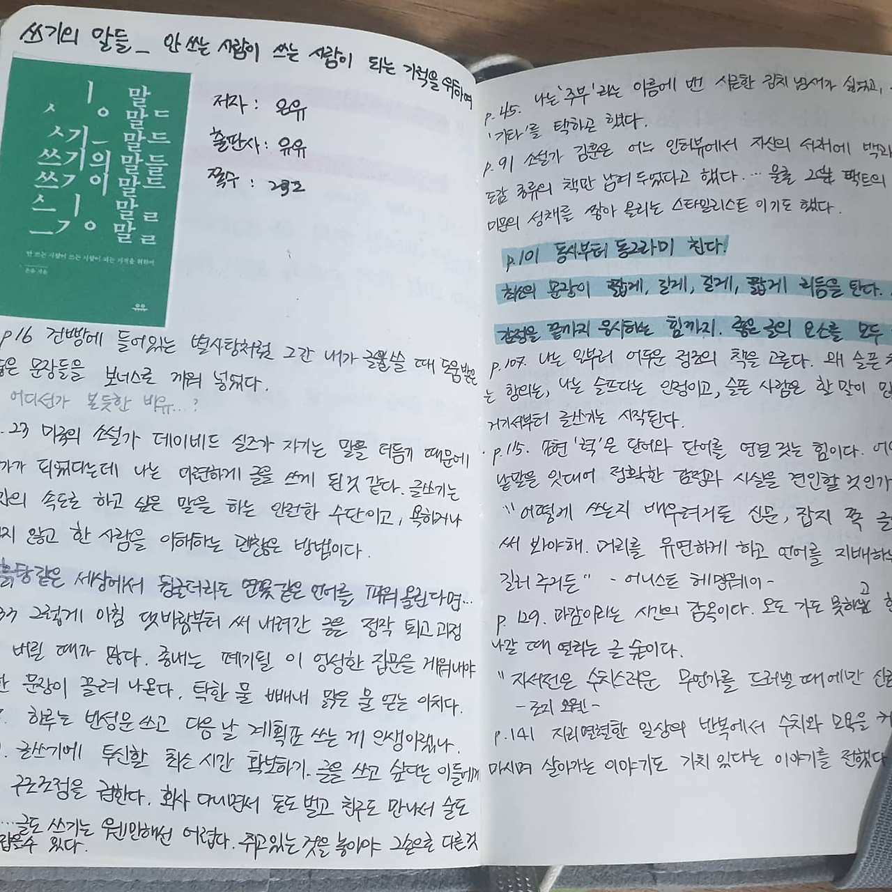 <쓰기의 말들> 은유 : 필사 & 서평 완료
