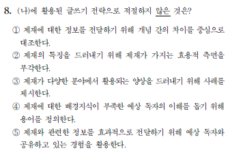 2021년 수능 국어영역 짝수 8번 문제