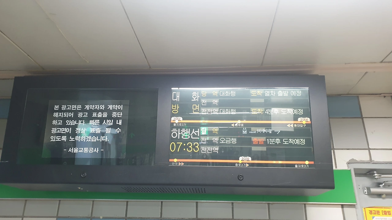 '띠리링 띠리링 띵! 발빠짐 주의! 출입문 닫습니다. '