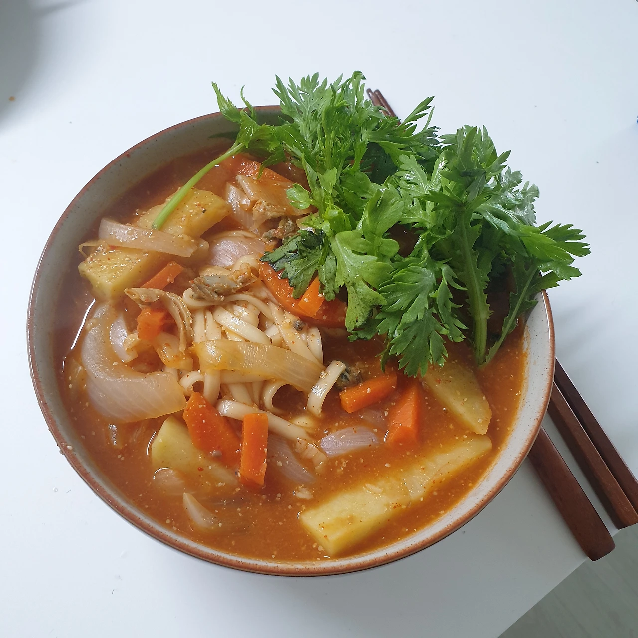 남편은 요리하는 섹시한 남... 까지는 아니고 '요리해줘서 고마운 남편'이다. 요고남은 늘 무심한듯 대충 계량하지만 간이 센 듯 하면서도 맛깔스러운 음식을 완성한다. 문제는 손이 너무 크다는 것이다. 예를 들면 장칼국수를 해 먹을 때다.