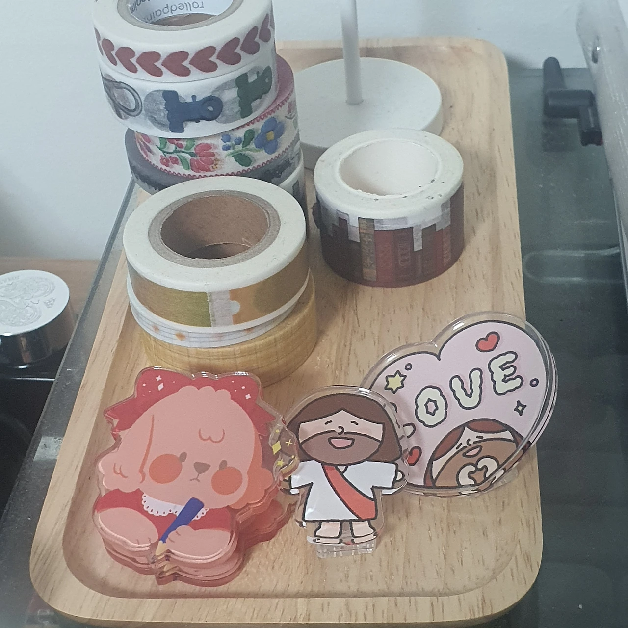 요즘 트렌드의 선두주자는 다이소라 해도 과언이 아니다. 없는 게 없는 다이소에서 얼마 전 출시한 아크릴집게를 보고 깜짝 놀랐다. 아니 이렇게 고퀄리티의 아크릴집게를 만들어주시다니요. 이러면 또 안 살 수가 없는데... 아크릴집게의 용도는 뭐냐 물으신다면 사실 이것도 이렇다 할 용도라기보다는 그저 예쁘고 사랑스러움이 사야 하는 이유의 팔할이다. '서울일러스트페어'에서 보게 된 '이릇'이라는 일러스트 작가의 아크릴 집게를 처음 사게 되었다. 붉은색 리본을 머리에 두른 캐릭터가 파란색 연필을 통통한 팔로 쥐고 있는데 , 처음 본 순간 사랑에 빠졌다. 이 물건을 가져야 할 이유가 하나둘씩 생겨나기 시작했다. 그래. 우리 집으로 가자. 가져오고서 본래 생각했던 용도(다이어리 쓸 때 종이를 잡아주는), 로는 거의 쓰지 않고 그저 감상하는 용도로 쓴다. 가끔 집게질을 딱딱 아크릴 집게만의 그립감이 있어서 내심 사길 잘했다 하고 뿌듯해한다. 그러나 엄마가 책상 위에 있는 이 집게를 보면 말할 것이다. 도대체 이 물건을 어디에 쓰려고 샀느냐고. 안 쓸 거면 서랍에 넣어두라고.