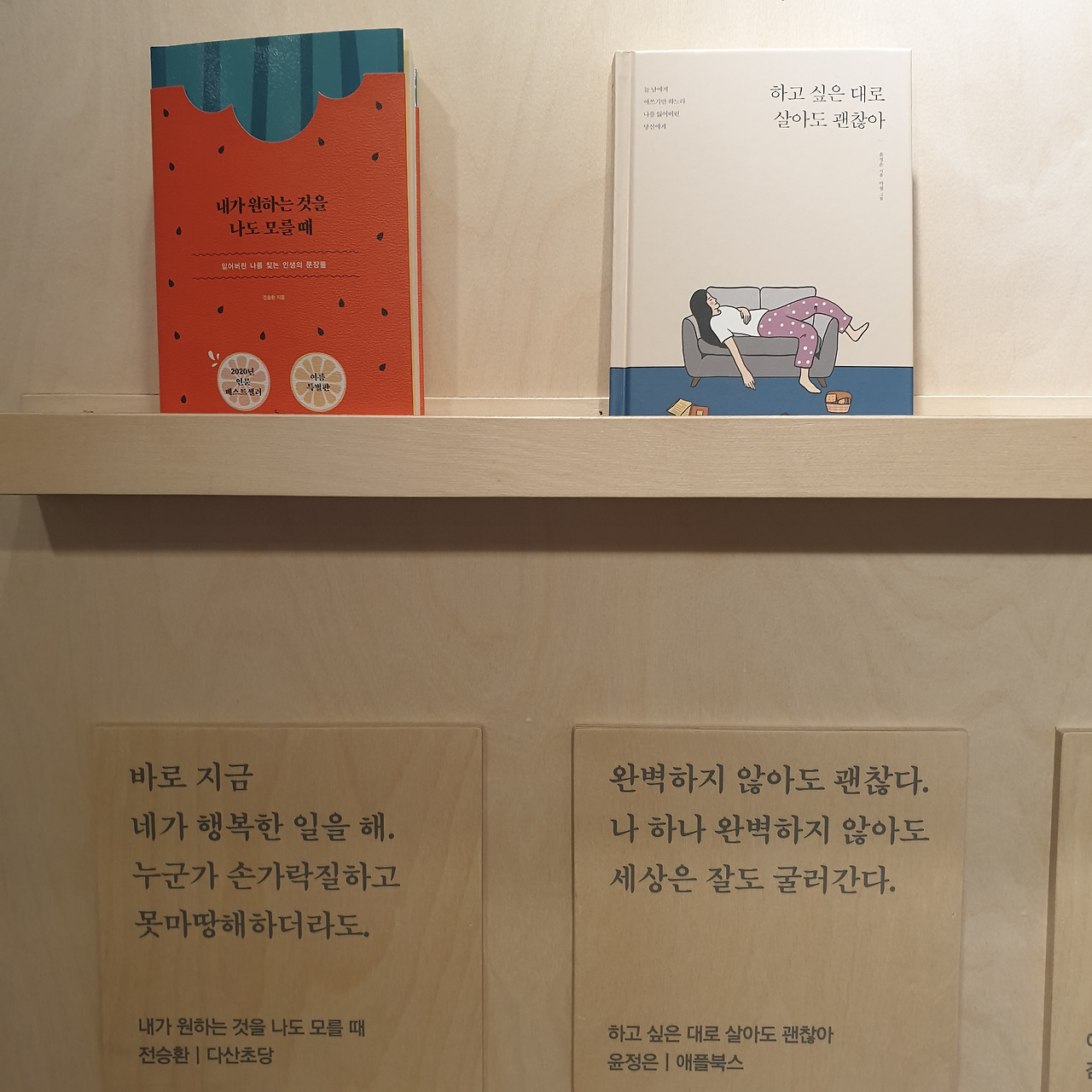 책 제목을 살펴 보니 자기계발/에세이 서가에는 괜찮아 라는 단어로 시작하는 책들이 많이 있었고 ~하는 너에게, 하마터면~, ~의 기쁨과 슬쁨 등의 책들이 눈에 띄었다. 요즘 제목의 트렌드 일까.