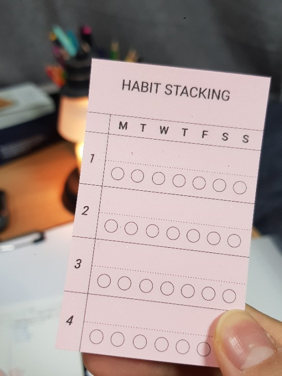 습관은 간단한 것이었다. 밤9시 이후에는 음식 먹지 않기, 스킨로션 바르기, 아침에 이불 정리하기와 같은 작은 것들이었다. 독서하기, 블로그 포스팅, 매일 에세이 한 꼭지 쓰기, 유튜브 촬영하기 들도 있겠지만 이를 습관으로 기록하기에는 다소 무겁다. 독서 하기 는 책 펴기로 고쳐 보자. 해빗트래커 기록은 아주 작은 스탭으로 나아갈 수 있는 트리거의 역할을 할 뿐이다. 매일 달성하고픈 실천과제을 작은 스탭으로 정하고 오늘부터 시작하자.