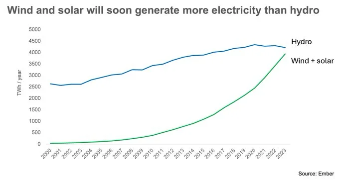 5. 풍력 + 태양광이 전통적인 재생에너지인 수력발전을 초과할 전망