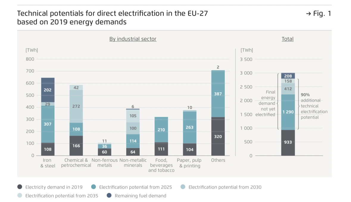 2. 새로운 연구: 2035년까지 이용 가능한 직접 전력화 기술이 전기화되지 않은 유럽 산업 에너지 수요의 90%를 충족할 수 있음