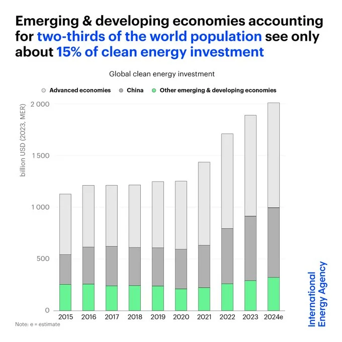 신흥국 투자 부족: 신흥국 및 개발도상국에서 청정 에너지 투자 비율 15%에 불과