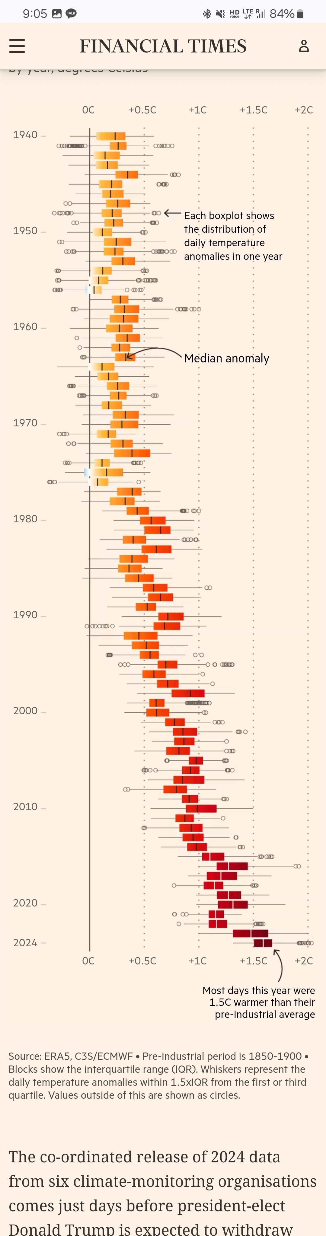 "2024년과 2023년의 기온이 얼마나 더 따뜻했는지가 가장 놀랍습니다(What is most striking is how much warmer 2024 and much of 2023 have been)."
