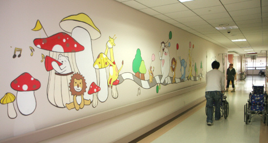 내가 예전에 있었던 환자실은 어린이 병동 안에 있었기 때문에 매일 아침 엑스레이를 찍을 때마다 어린이 병동 1층을 지나가곤 했다. 벽 전체에 덕지덕지 붙어있는 개구리와 염소, 곰돌이 캐릭터들이 원색의 무지개가 활짝 피어있는 푸른 풀밭에서 하하호호 뛰노는 모습을 볼 때마다 약 기운이 올라와 속이 울렁거리고는 했었는데, 그래서 그런지 요즘도 알록달록한 무언가를 보면 살짝 거부감이 든다.