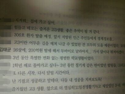 희망차게 세우던 모든 계획들이 갑자기 중단됐고 그날 저녁에는 학원 책상보다 병원 침실에서 익숙한 편안함을 느끼는 내 몸이 정말 미웠다.