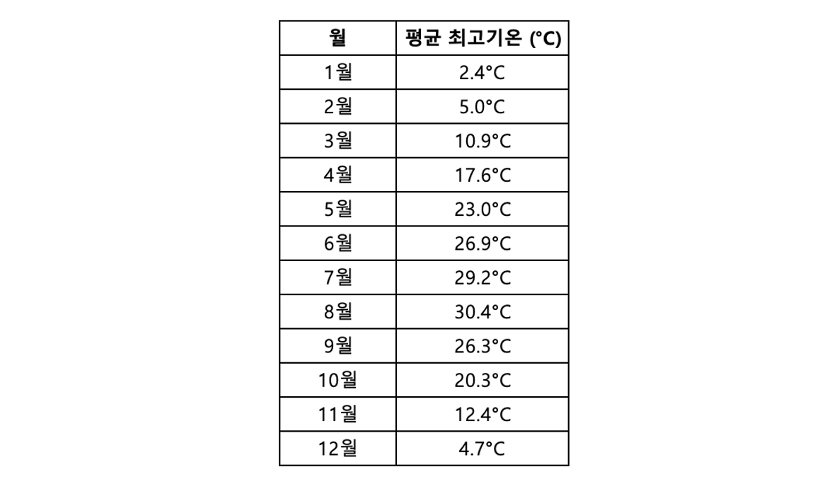 "최고기온 숫자를 보고 우리가 여기서 하나 더 간파할 수 있는 것이 있는데 그것이 뭔가?"
