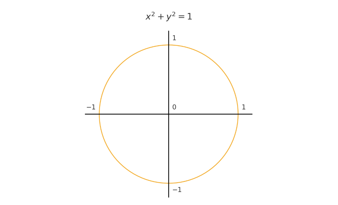 이 공식에서 애매한 변수는 하나도 없다. 우변의 r은 반지름을 뜻하는 상수이므로 변수가 아니다. 반지름 1. 이렇게 정의하면 끝이다. 좌변의 x와 y는 xy좌표축에 뭐라도 하나의 값을 가진다. 그런 의미에서 애매한 것은 하나도 없다. 자리가 꽉 찬 상태에서 각각 제자리에 앉아있는 모습이다. 계산도 얼마든지 가능하다. 바뀔 것도 변할 것도 없다. 정적이다.