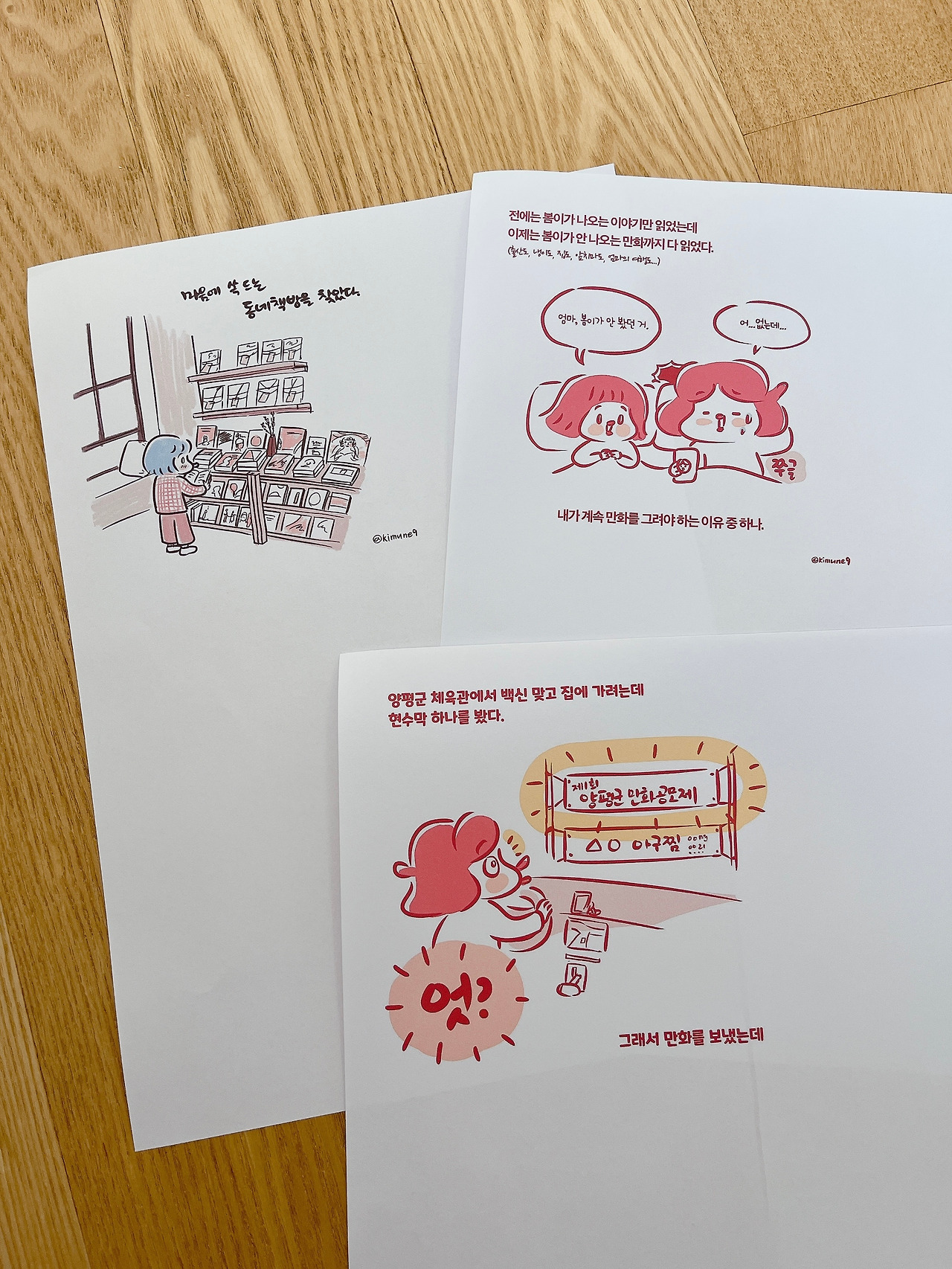 프린트된 내 만화를 한동안 보고 있는데 눈물이 찔끔 났다.