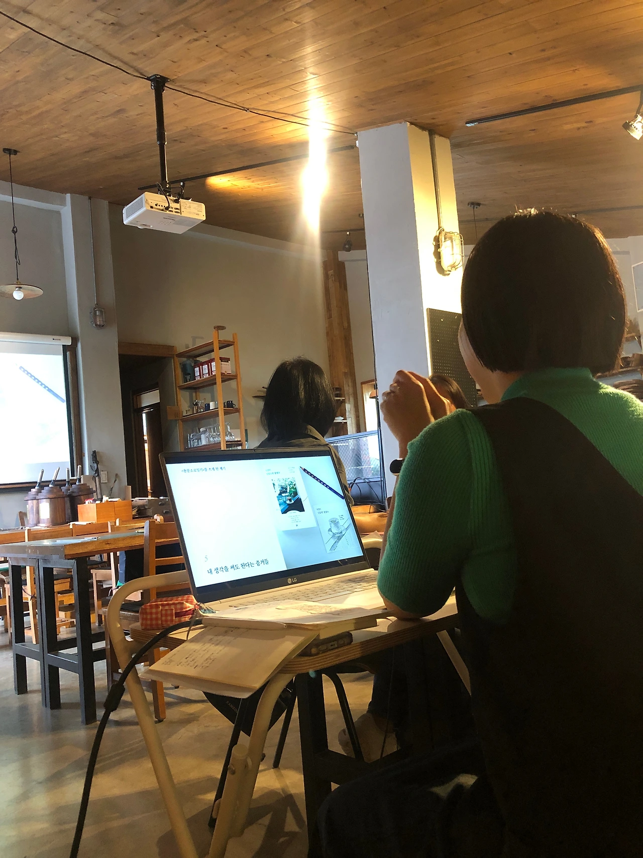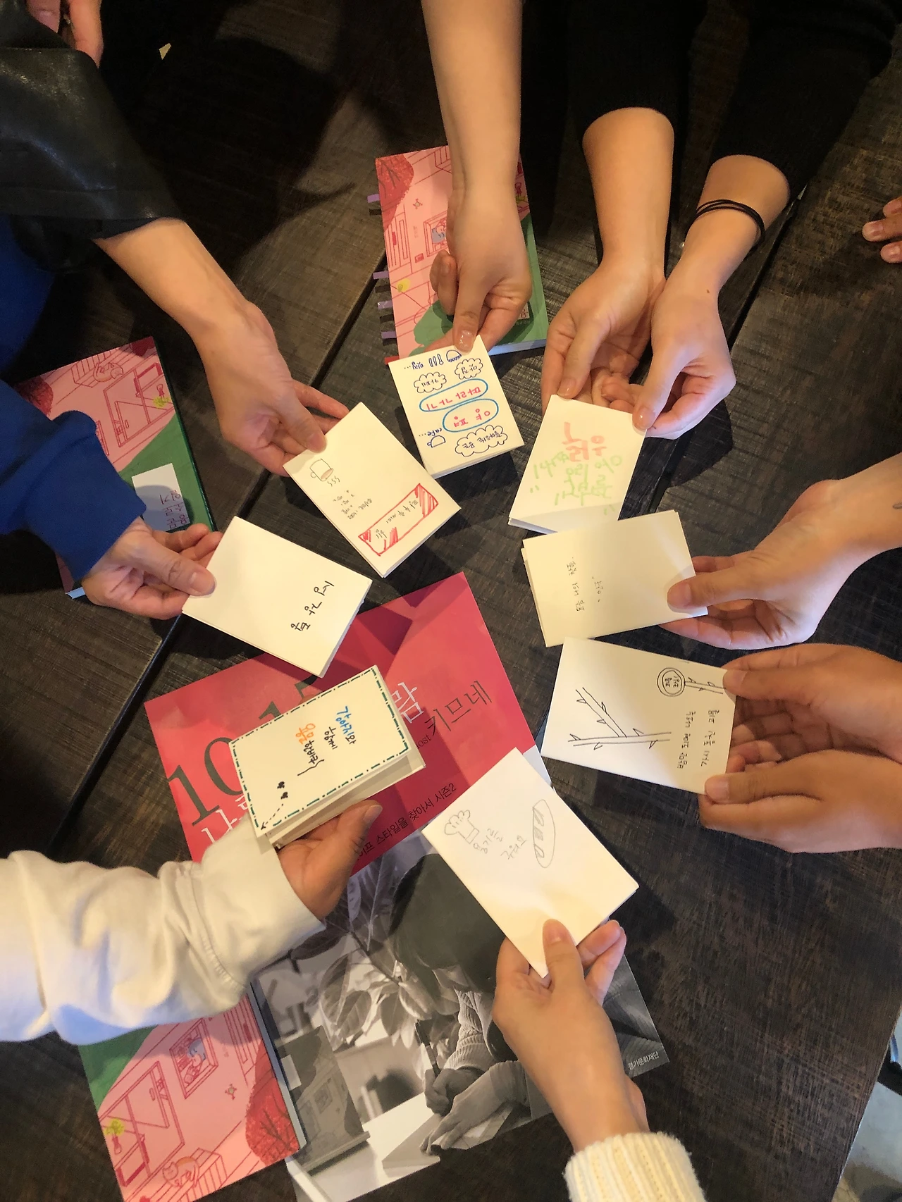 자신의 이야기를 담은 책의 초초초초초본, 작은 진도 만들었다. 몰입하는 이들. 그 20분 남짓의 적막이 좋았다. 모두 다 하고 싶은 이야기를 품고 있다. 시작하는 방법을 모를 뿐. 자신의 책 초본을 발표하며 누군가는 생기를 띄었고, 누군가는 눈물을 흘렸다.(사실 모인 사람반 이상이 울었다.)