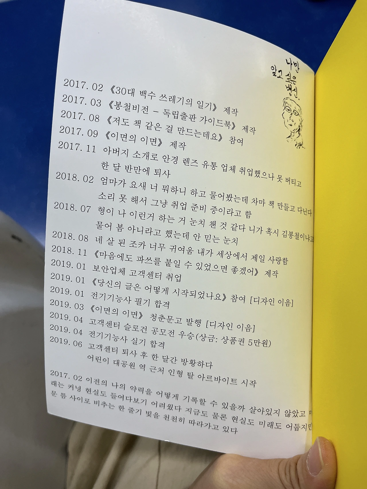 한 번은 독립출판 제작자 모임에 갔을 때 김봉철 작가님을 찾아본 적이 있다. 없을 것 같기는 했지만 역시 없었다. 요새 뭐하는지 아는 사람이 있는지 물어보았지만 아는 사람은 없었다. 그리고 나도 누군가 궁금해하는 사람이 될 수 있을까? 생각했다.
