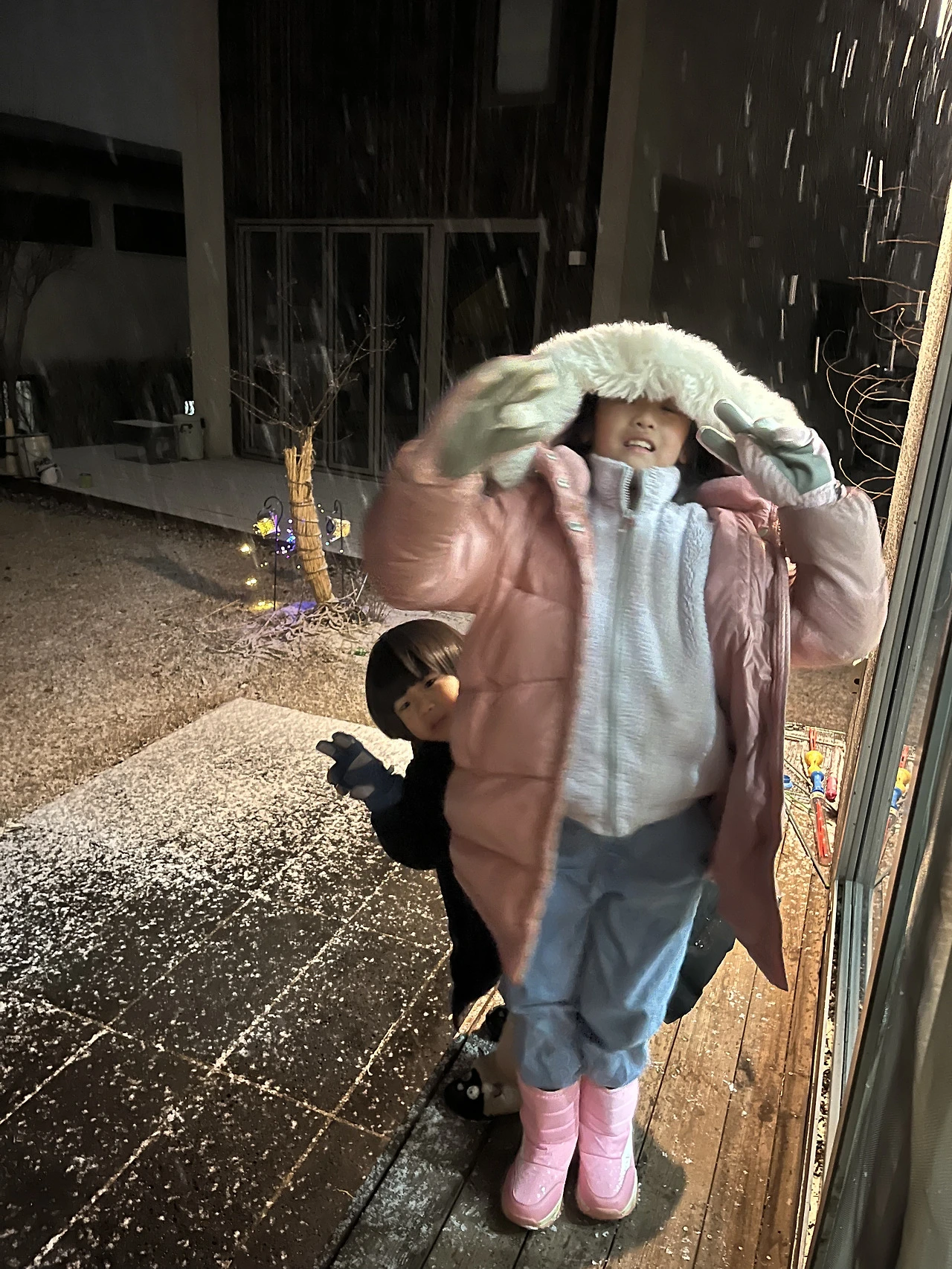 -아이들은 이제 겨우 노란 단풍 들기 시작하던 가을부터 “엄마, 눈 언제 와?”라고 물었다. 어제는 “엄마 오늘 7시에 눈 온대.” 아이들이 예언을 들은 것 같은 눈으로 밥을 먹는 둥 마는 둥 하며 거실 창문 속 까만 마당을 뚫어지게 보았다. 그리고 시계를 보더니 “7시다!” 외쳤다. 손날을 세워 이마에 대고 거실 창문에 찰싹 붙었다. 봄이가 말했다. “눈이다!” 껌껌한 마당에 비듬같이 작은 눈이 몇 개 보였다. 아이들은 눈 깜짝할 새 장갑과 장화를 신고 나가 방방 뛰고 있다. 딱 눈 오는 날 시골집 똥강아지들이었다. 눈은 금세 커져 마당을 덮었고 아이들이 굴리는 눈도 점점 커졌다. 코와 볼이 뻘겋게 달아오르고 패딩에 눈이 쌓여도 아이들은 행복하다. 봄이는 잠깐 현관에 들어와 동생 나무랑 부딪혔다며 ”엄마, 나 코에 피나? “ 하더니 피가 안 나는 걸 확인하고 또 한참을 나가 놀았다. 어머니는 눈을 보며 내일 눈길 걱정에 벌써 수심이 가득하시지만 나도 아직은 첫눈이 좋다. 내 안에 어린아이가 그래도 반 정도는 있다.
