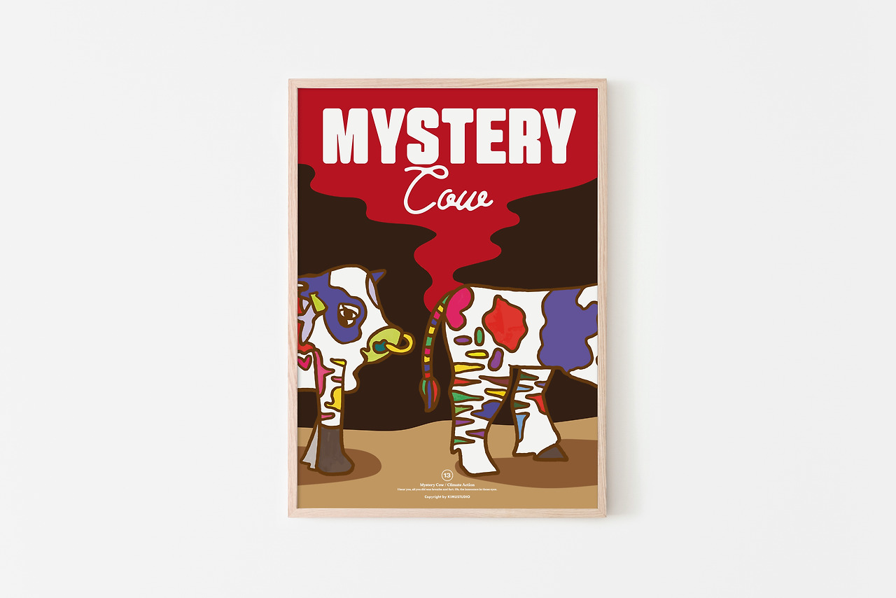 여러분도 <미스터리 카우> 포스터로 ‘기후변화 대응’ 소셜이슈를 주변에 함께 알려보는 건 어떨까요? 알록달록 소가 방귀세라는 누명을 쓰지 않도록 함께 관심 가져주세요!