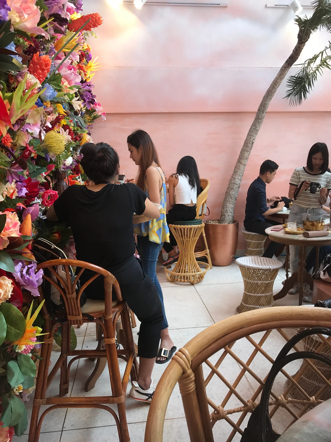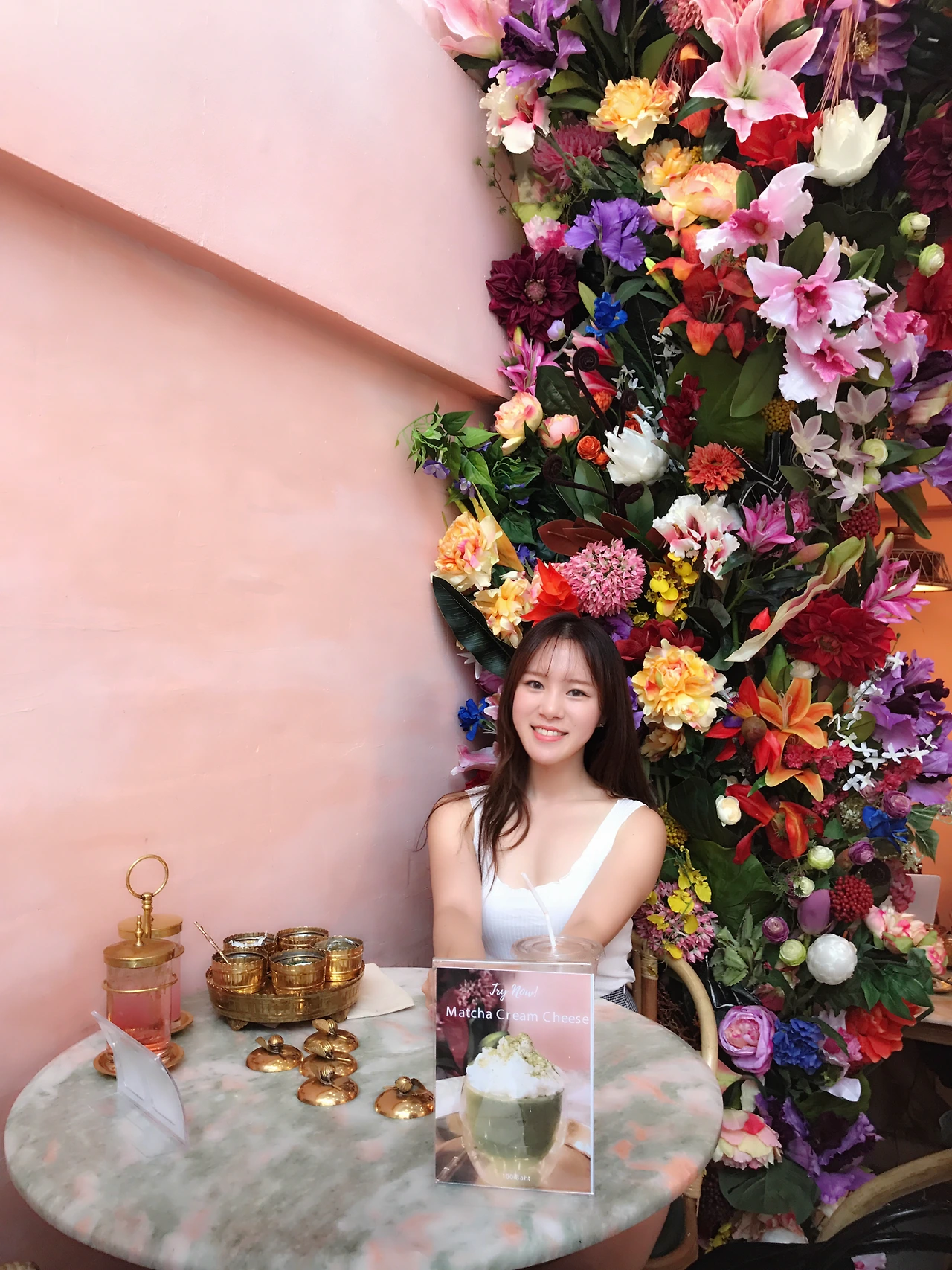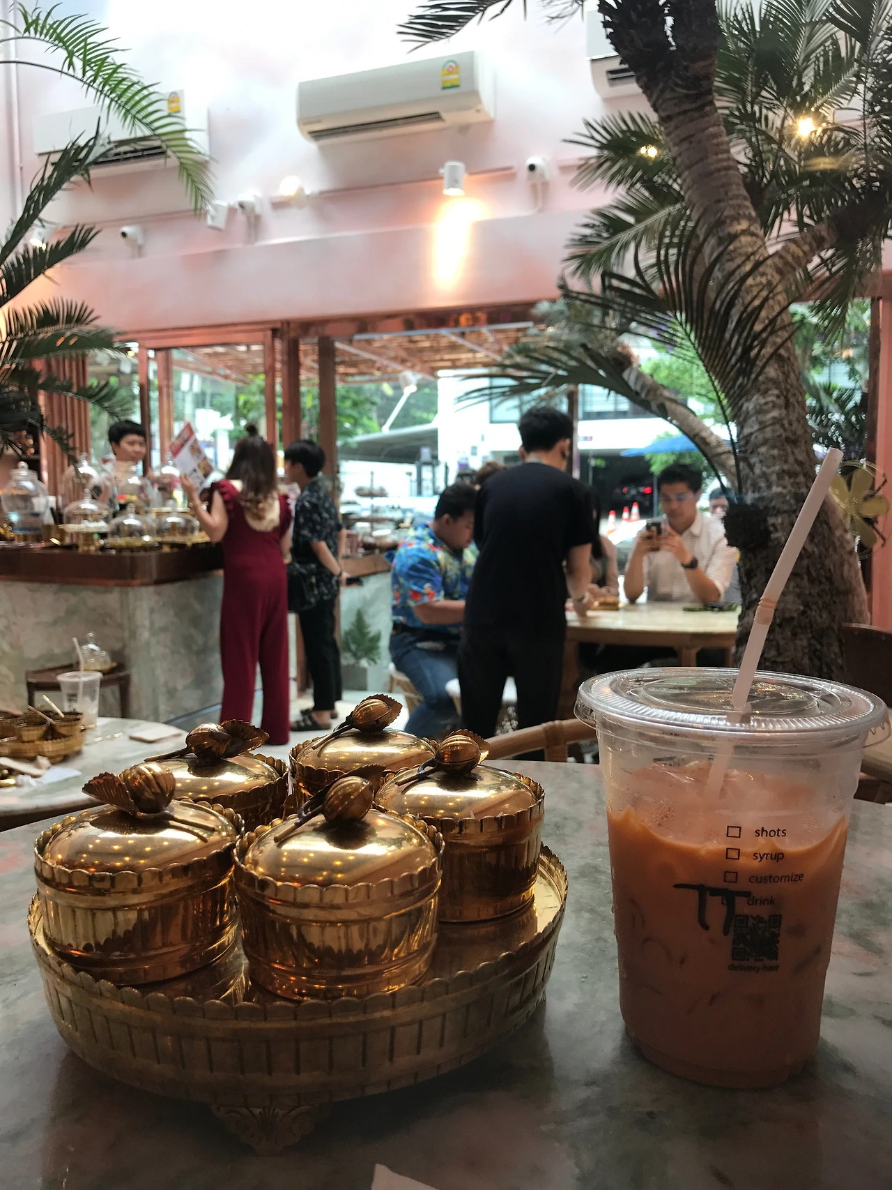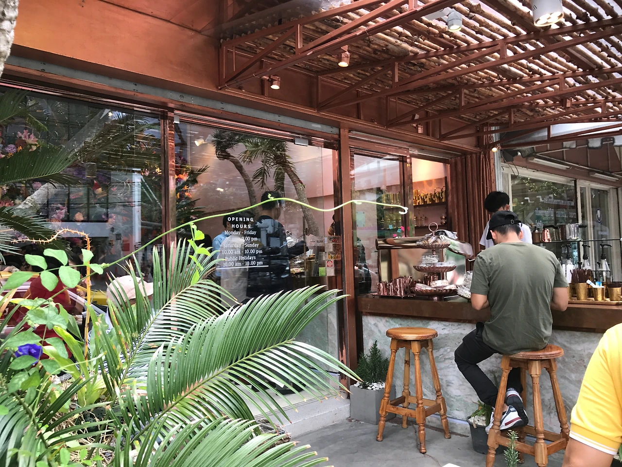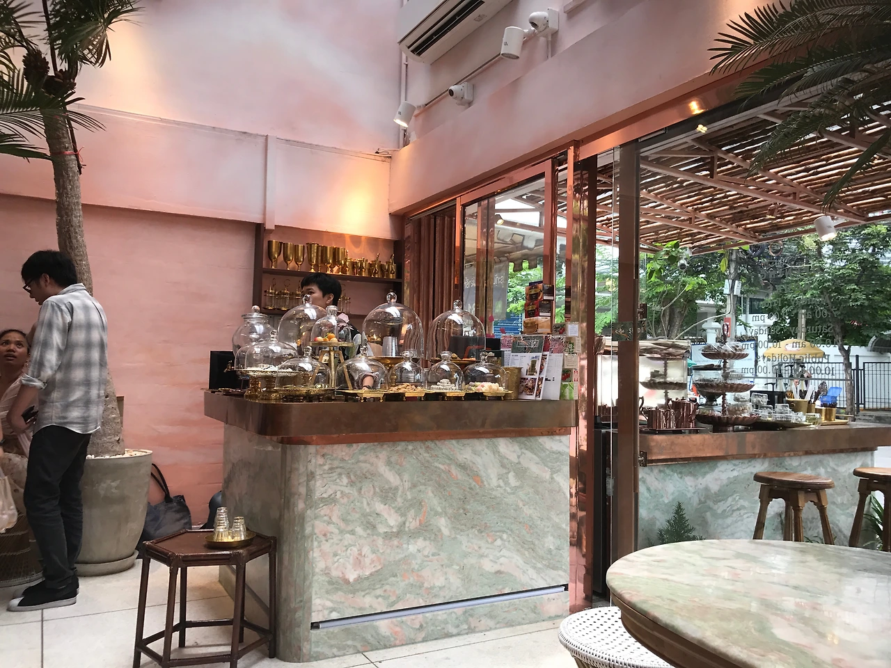 볕이 잘 들어오도록 디자인된 천장이 한몫하는 셈인데 벽면을 칠한 페인트도 색이 오묘하니 예쁘다. 전체적으로 여심을 저격하기 위해 탄생된 공간 같은데 태국 남성들도 꽤나 즐기는 눈치. 카페가 그리 넓지는 않지만 각 테이블마다 특색이 있어서 어느 공간에서 사진을 찍어도 예쁘다.