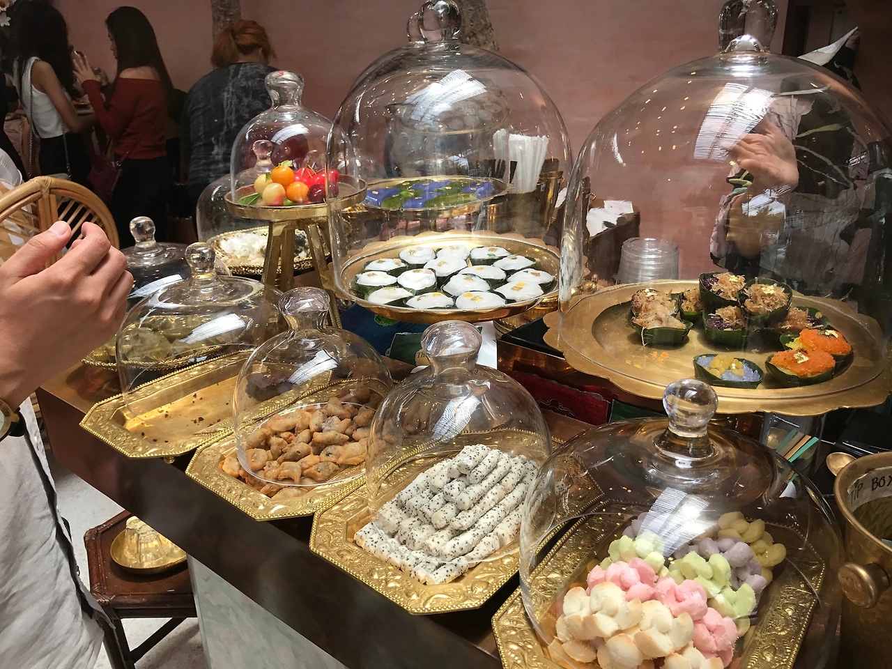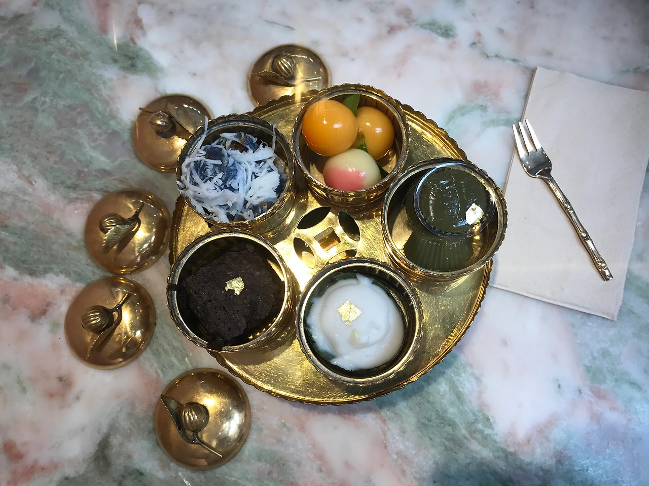 주문한 타이 디저트 세트 등장! 브라우니부터 시계 반대 방향으로 코코넛 맛이 나는 떡(우리가 먹는 떡보다는 찰기가 약하고 훨씬 부드럽다), 그다음 초록색 디저트도 비슷한 식감이고 과일 모양의 디저트는 안에 앙금이 들었는지 정말 부드럽고 쫄깃하다. 가장 맛있게 먹은 것 중 하나. 그다음엔 떡에 코코넛이 묻힌 형태의 간식인데 이 또한 고소하고 달콤하다. 각기 다른 매력에 이끌려 결국 다 먹었다는 후문. 역시 1인 1 디저트가 답이다.