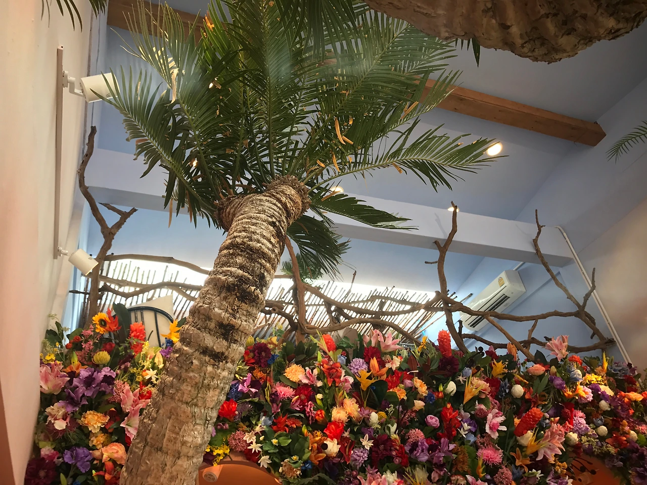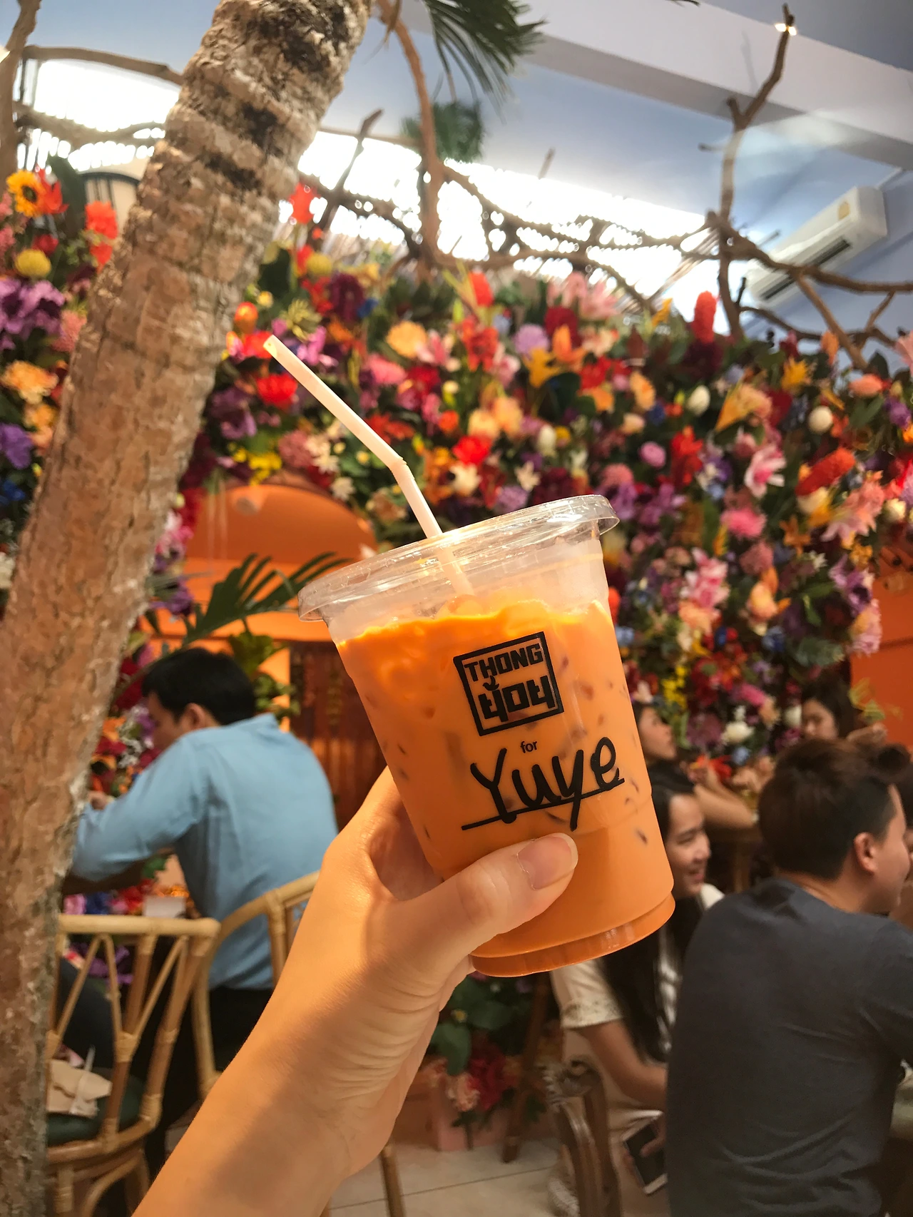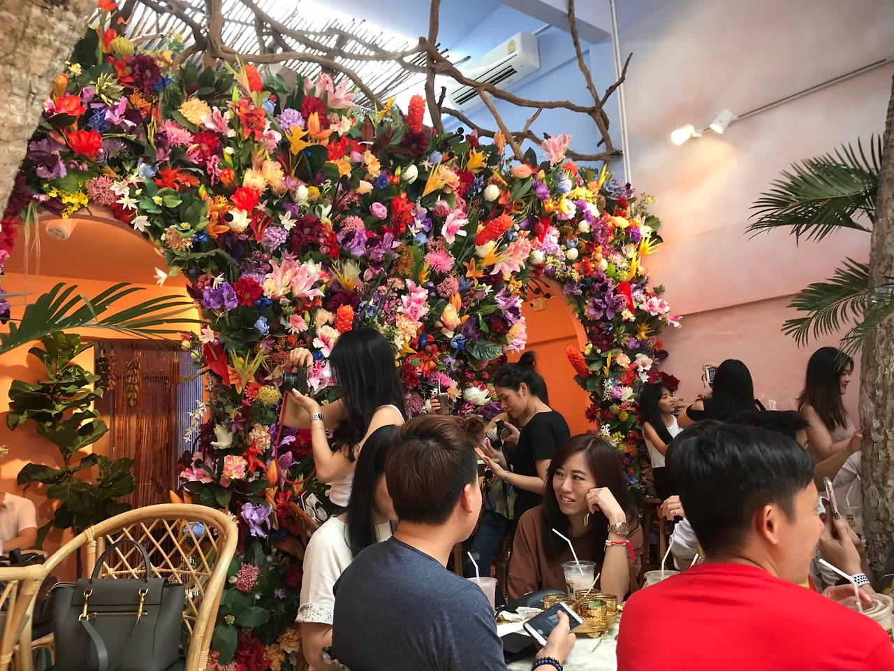 Thongyoy Cafe가 핫플레이스로 떠오른 건 카페 벽면을 가득 채운 저 예쁜 꽃 때문! 저 자리에 앉고 싶다면 미리 직원에게 말해두면 된다. 자리가 비는 대로 이동 가능.