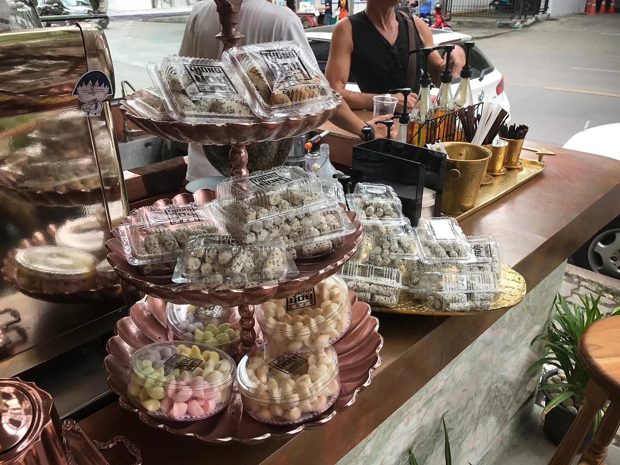 각 디저트는 따로 구입 시 35밧(한화 1,190원) 또는 40밧(한화 1,360원)이지만 5개를 다 맛볼 수 있는 세트를 주문하면 150밧(한화 5,100원)이다. 여 사장님께서 친절하게 하나하나 어떤 맛인지 설명해주셨고 마음에 드는 디저트 5개를 선택한 후 계산을 마쳤다.