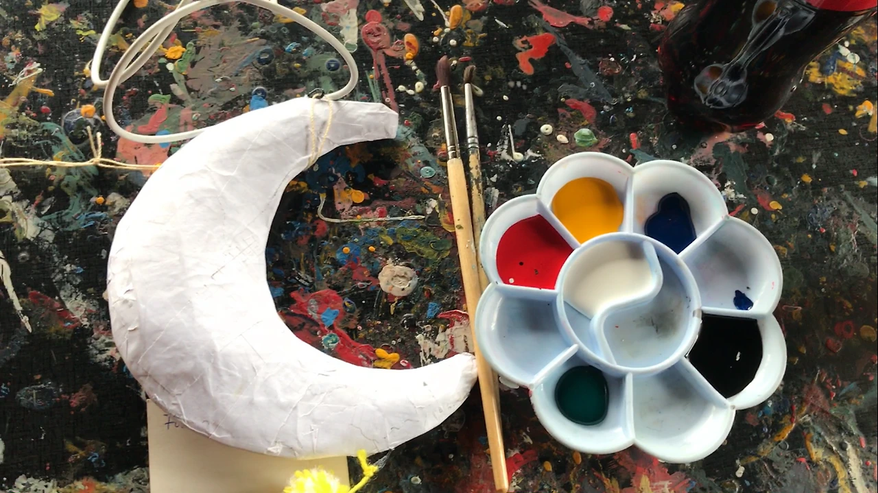 나는 달을 좋아하니까. 당연히 달! 아저씨가 정성스럽게 짜준 물감이 담긴 팔레트, 붓, 물통이면 준비 끝이다.