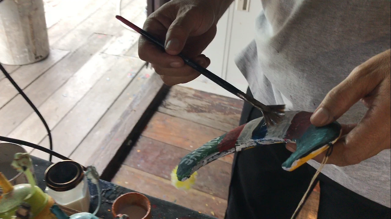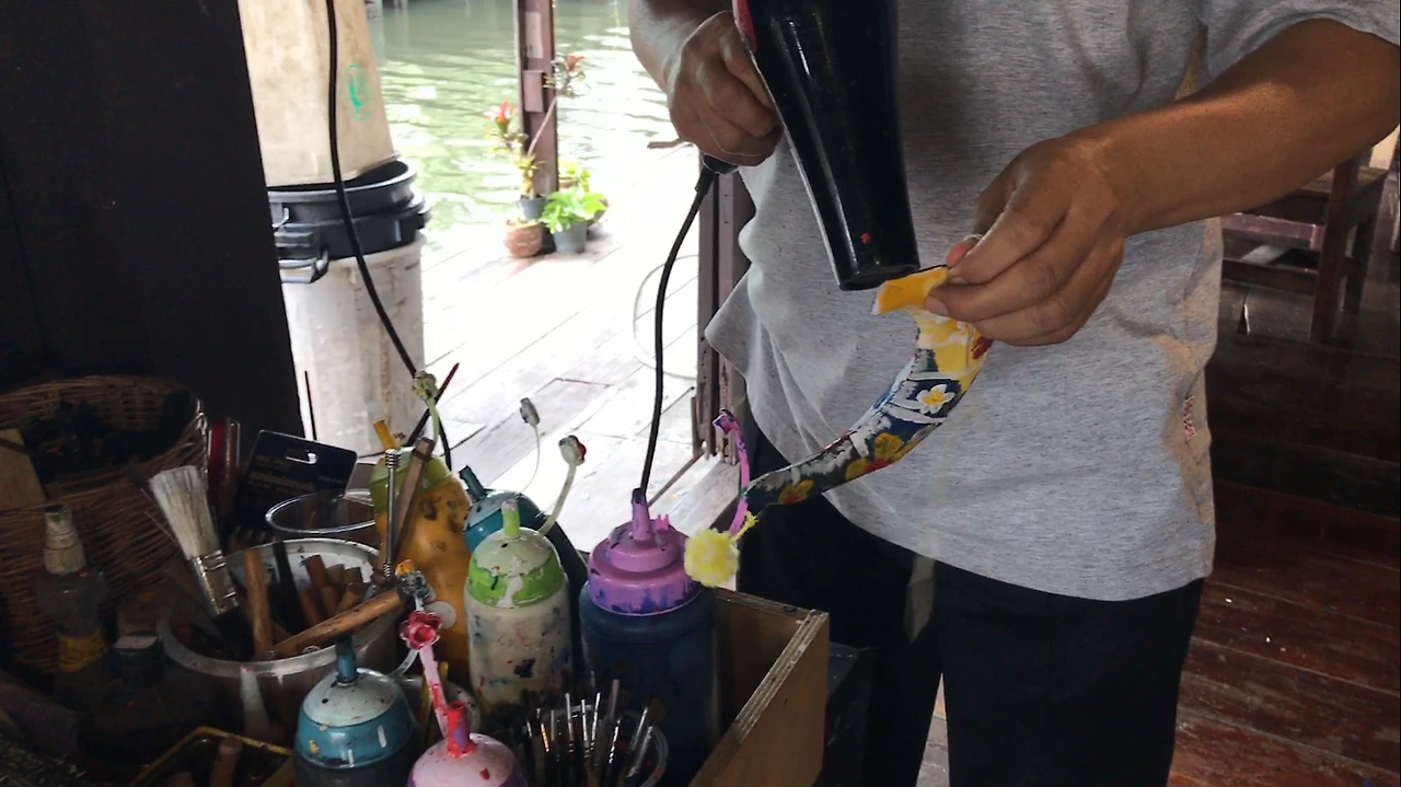 채색을 마친 후 주인아저씨의 손을 한번 더 거쳐서 작품이 된다. 칠을 하고 말리는 작업을 반복 중인 주인아저씨. 한 5분 동안 동일한 작업을 반복하셨다.