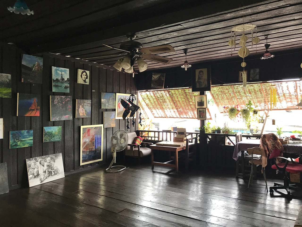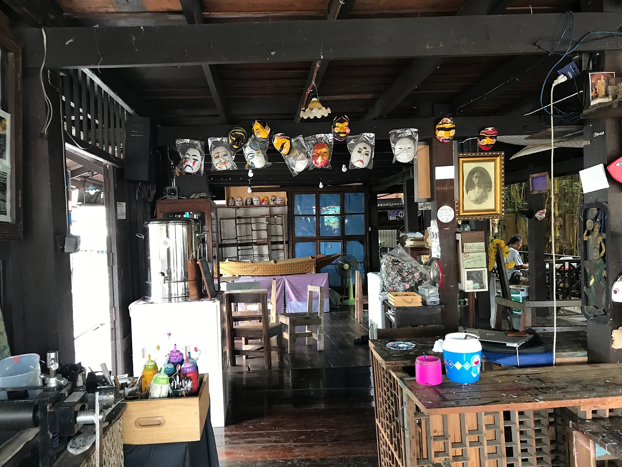 아쉬운 마음을 뒤로하고 목이라도 축일 겸 타이 밀크티를 주문했다. 그리고 1층과 2층으로 나뉜 아티스트 하우스 곳곳을 둘러보았다. 특히 2층은 갤러리로 꾸며져 있는데 무언극으로 진행되는 인형극에 쓰일만한 소품들이 가득했다. 각종 탈이며 인형이며 그 색과 표정이 너무나도 선명해서 더욱 생생한 기억. 이밖에 미술 작품들도 전시되어 있어 차분히 둘러보기에 좋았다.