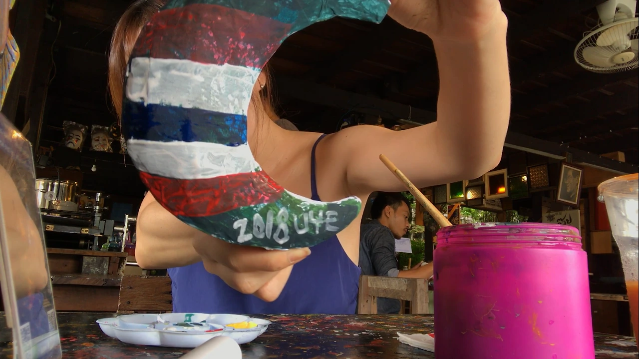 마침내 완성된 모습! 앞뒤로 열심히 꾸며보았다. 한쪽은 태국을 사랑하는 마음과 자기애를 담아 태국 국기와 내 이름까지 완벽히 새겨보았다.