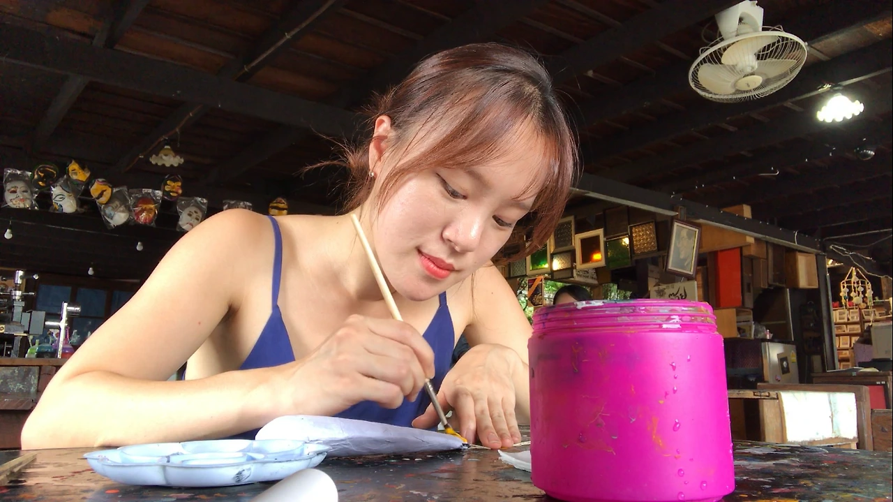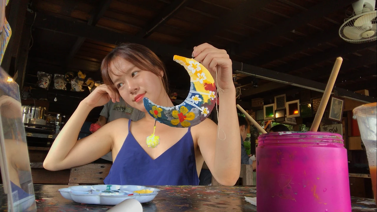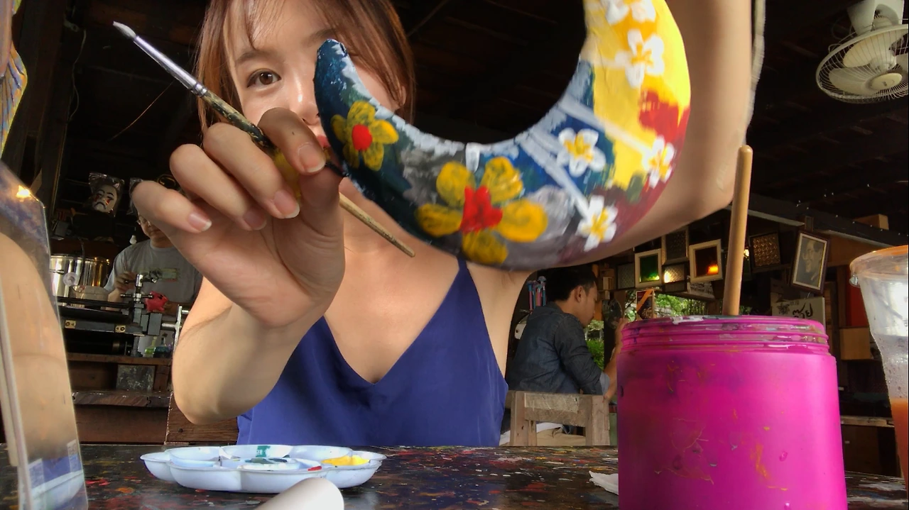 주문한 타이 밀크티를 마시며 바깥 풍경을 구경하고 있는데 주인아저씨가 조용히 페이스북 주소를 적어 내미신다. 코쿤 카! 이후 또 한참 동안 멍하니 시간을 보내고 있는데 어떤 커플이 들어오더니 귀여운 흰색 코끼리를 어디서 집어왔다. 기념품을 구입한 줄 알았는데 가만 지켜보니 그 위에 색을 덧입혔다. 그 순간 동시에 주인아저씨와 눈이 마주쳤는데 따라오란다.