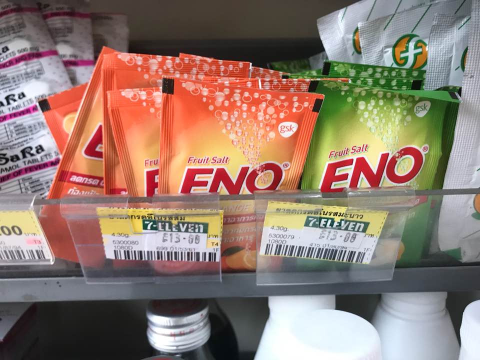 ENO라는 소화제를 판매한다. 약 한 봉지를 물에 타면 발포 비타민처럼 변하는데 바로 먹어주는 게 포인트! 효과가 좋아서 한국에 돌아갈 때 쟁여가는 물품이기도 하다.