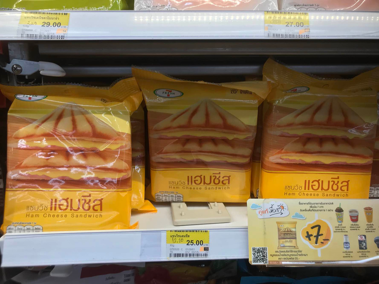 방콕에서 72일간의 장기여행 중 50일은 먹은 것 같은 햄치즈 샌드위치. 저 봉지를 들고 가면 그릴 기계에 넣고 따뜻하게 구워주는데 슬라이스 햄과 뚝뚝 떨어지는 치즈가 포켓형으로 들어있어 아침식사로 즐기기에 딱이다.
